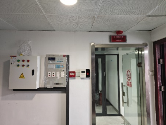 设置一个气体紧急启动/停止按钮,安装在灭火区域外墙上。
